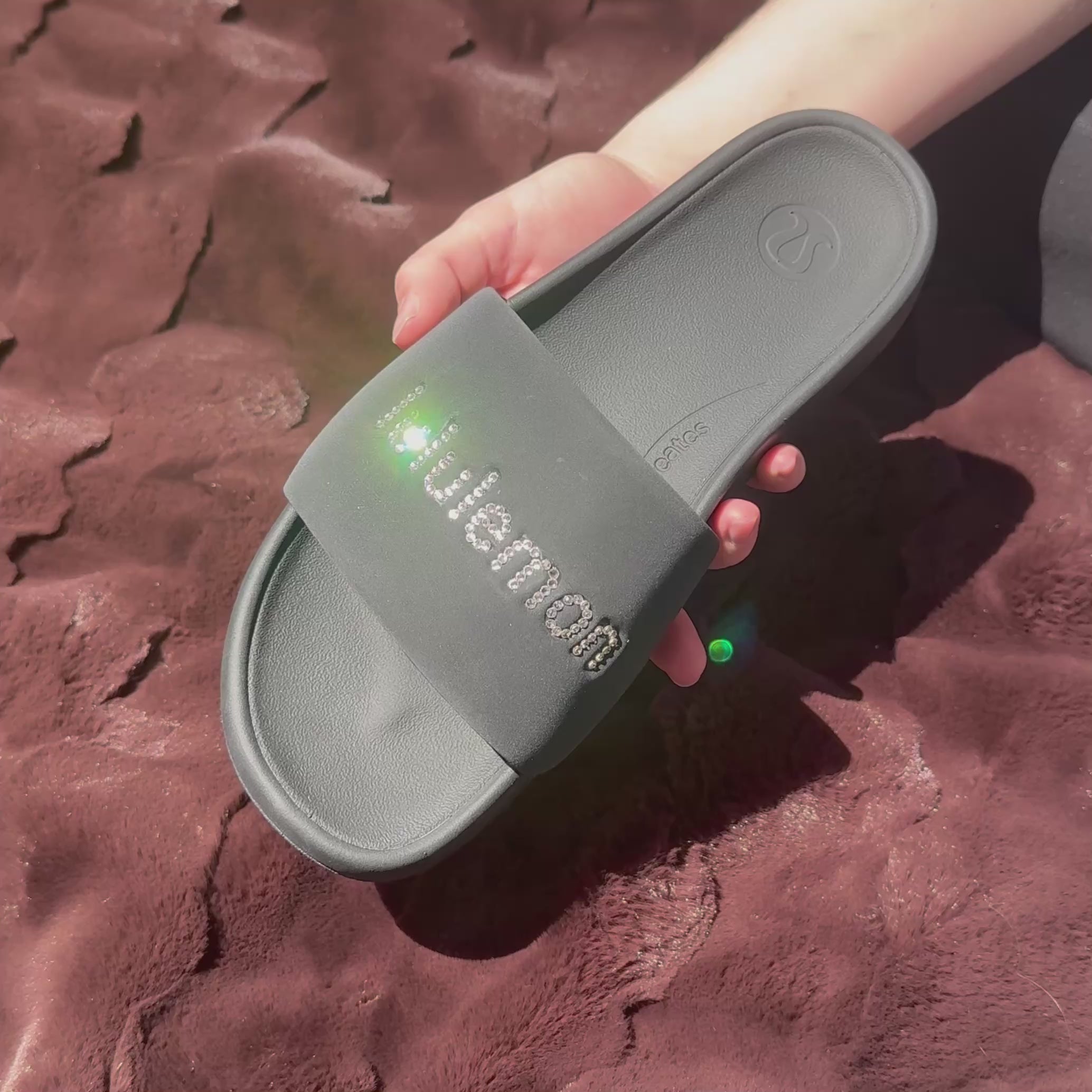Effortless comfort meets elevated sparkle. The STRAZ Custom Lululemon Restfeel Slide transforms this everyday essential into a luxe statement piece, featuring hand‑applied crystal detailing that adds a refined touch to a relaxed silhouette.